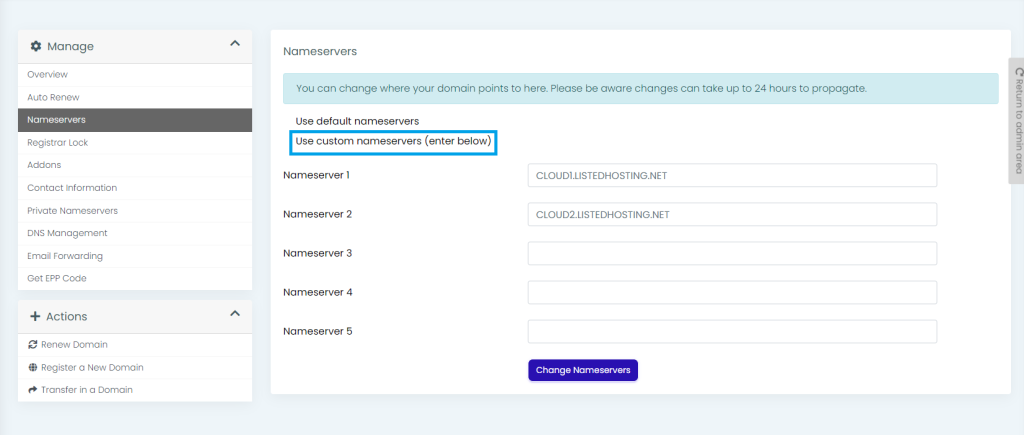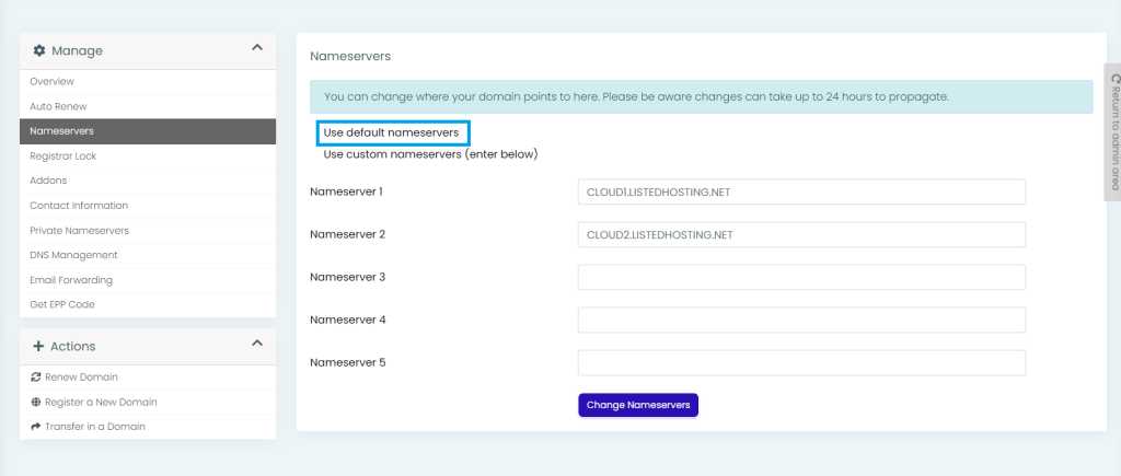 6) Click on Change Nameservers to save the changes.