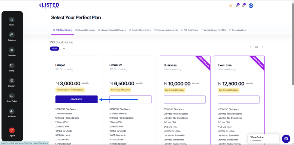Click on “Order Now” to select any hosting plan of your choice