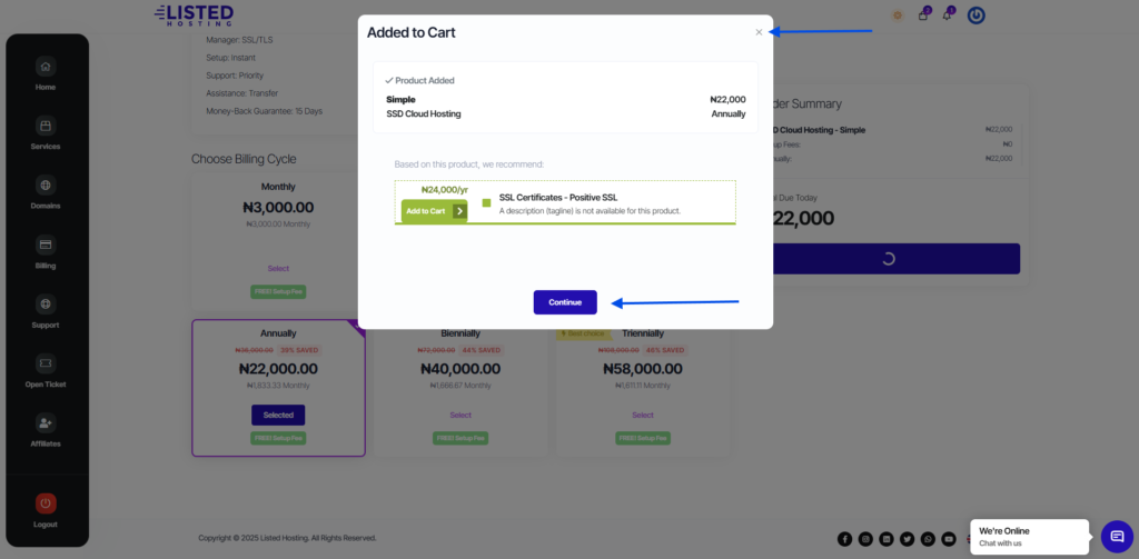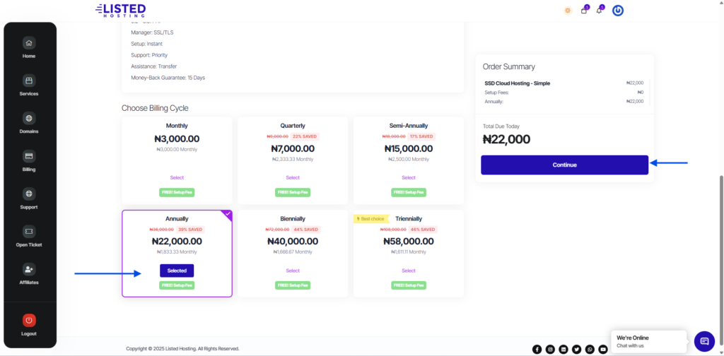 Select your desired billing cycle and click “Continue”