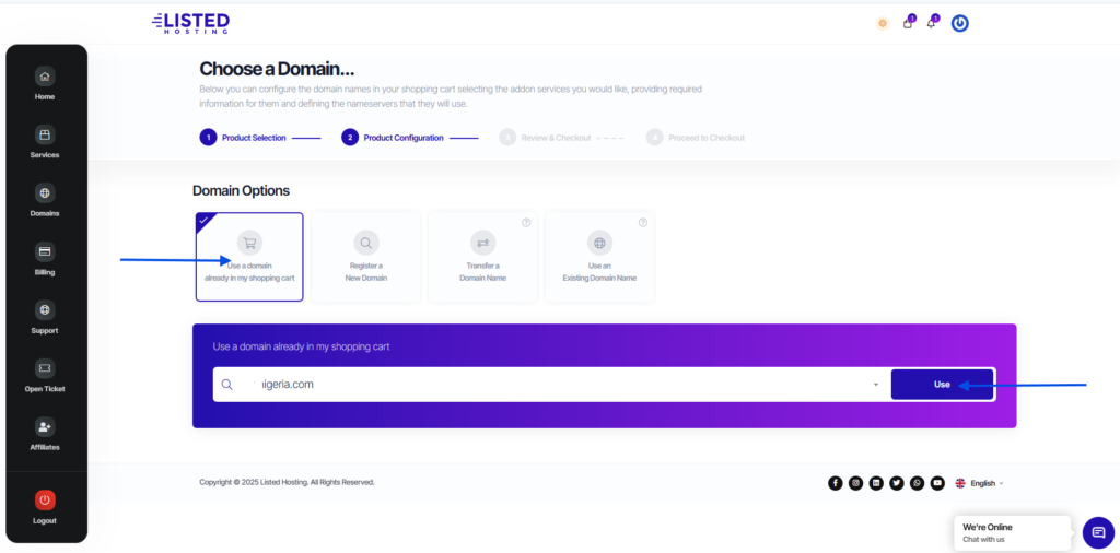 This article will guide you on how to register a new domain or transfer a domain and buy an hosting plan simultaneously without hassle at Listed Hosting